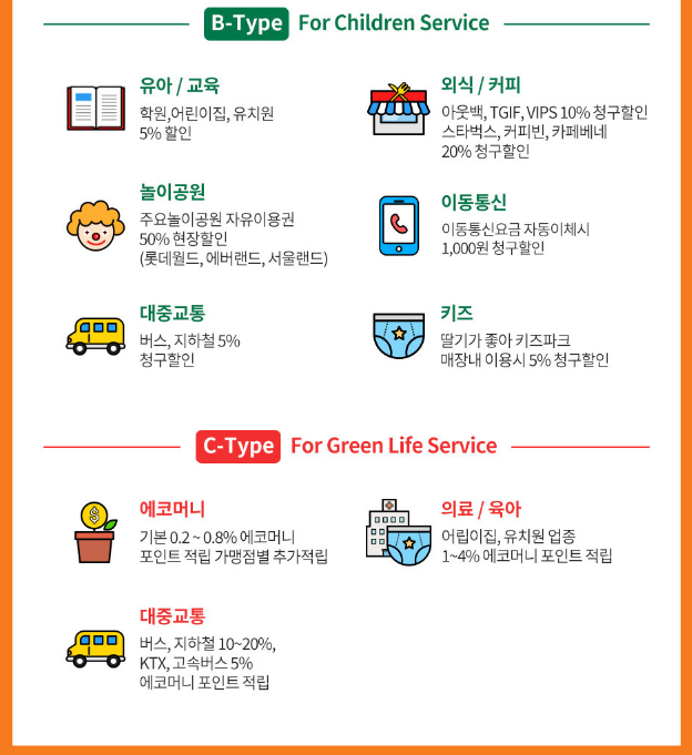 →카드 타입에 따라 혜택이 상아합니다. 보다 더 유용하게 사용할수 있는 혜택의 카드를 선택하셔서 신청하세요