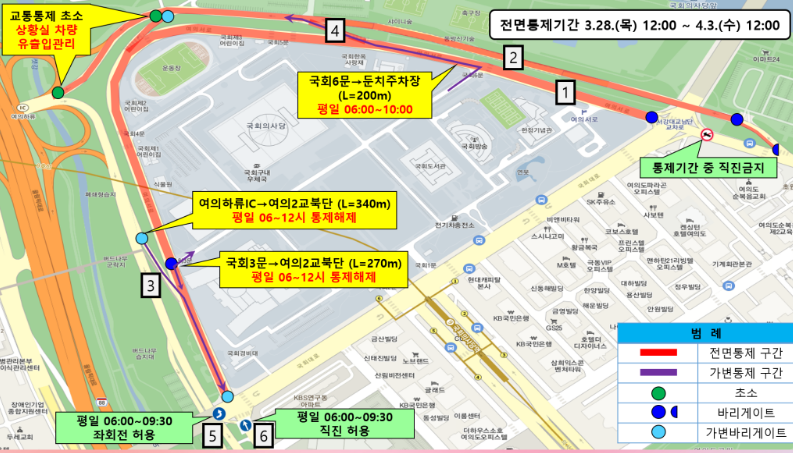 ■ 전면 통제 기간 : 3.28.(목) 12:00 ~ 4.4.(화) 22:00 / 8일간