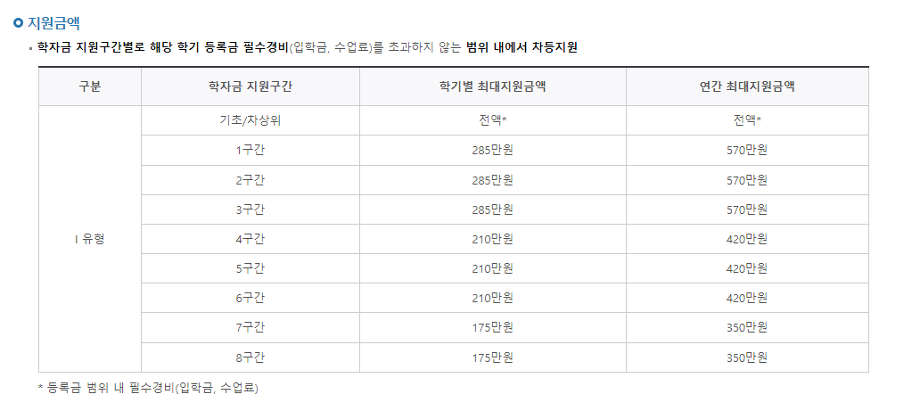 →대학연계 지원형으로 대학 자체 기준에 따라 지원금액이 결정됩니다.